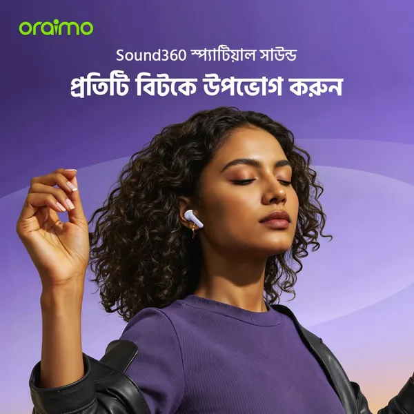 oraimo-র বিশেষ স্প্যাটিয়াল সাউন্ড অ্যালগরিদম SpaceBuds Lite-কে আপনার চারপাশে ৩৬০° সারাউন্ড সাউন্ড তৈরি করতে সাহায্য করে। এটি সমৃদ্ধ, থ্রিডি অডিও প্রদান করে, যা গান, মুভি ও গেমকে করে আরও জীবন্ত ও বাস্তবসম্মত।
