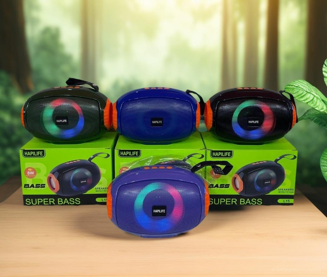 Bring your music to life with the Hapilife L15 Super Bass Portable Bluetooth Speaker. This versatile and compact speaker is designed to deliver powerful, high-quality audio with dynamic RGB lighting, creating the perfect atmosphere for any occasion. With its super bass and long-range wireless connectivity, the L15 is your go-to companion for home entertainment, parties, or just relaxing with your favorite tunes.